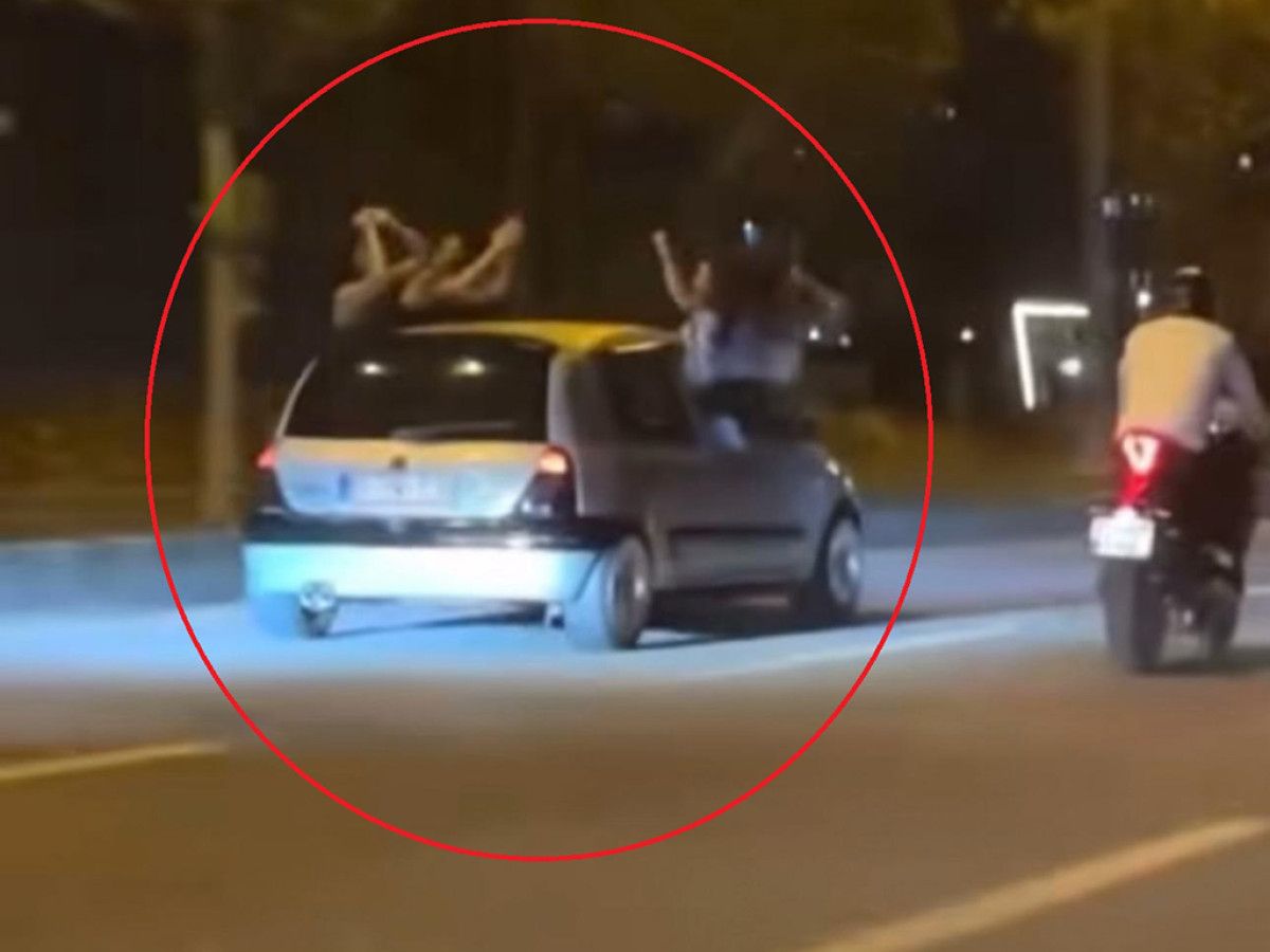 Diyarbakır kent merkezinde seyir halindeki otomobildeki kişiler camlardan dışarı çıkıp tehlikeli halde yolculuk yaptı. Otomobil, bir süre bu şekilde ilerleyip gözden kayboldu. YAŞANANLAR KAMERADA O anlar cep telefonuyla kayda alındı.