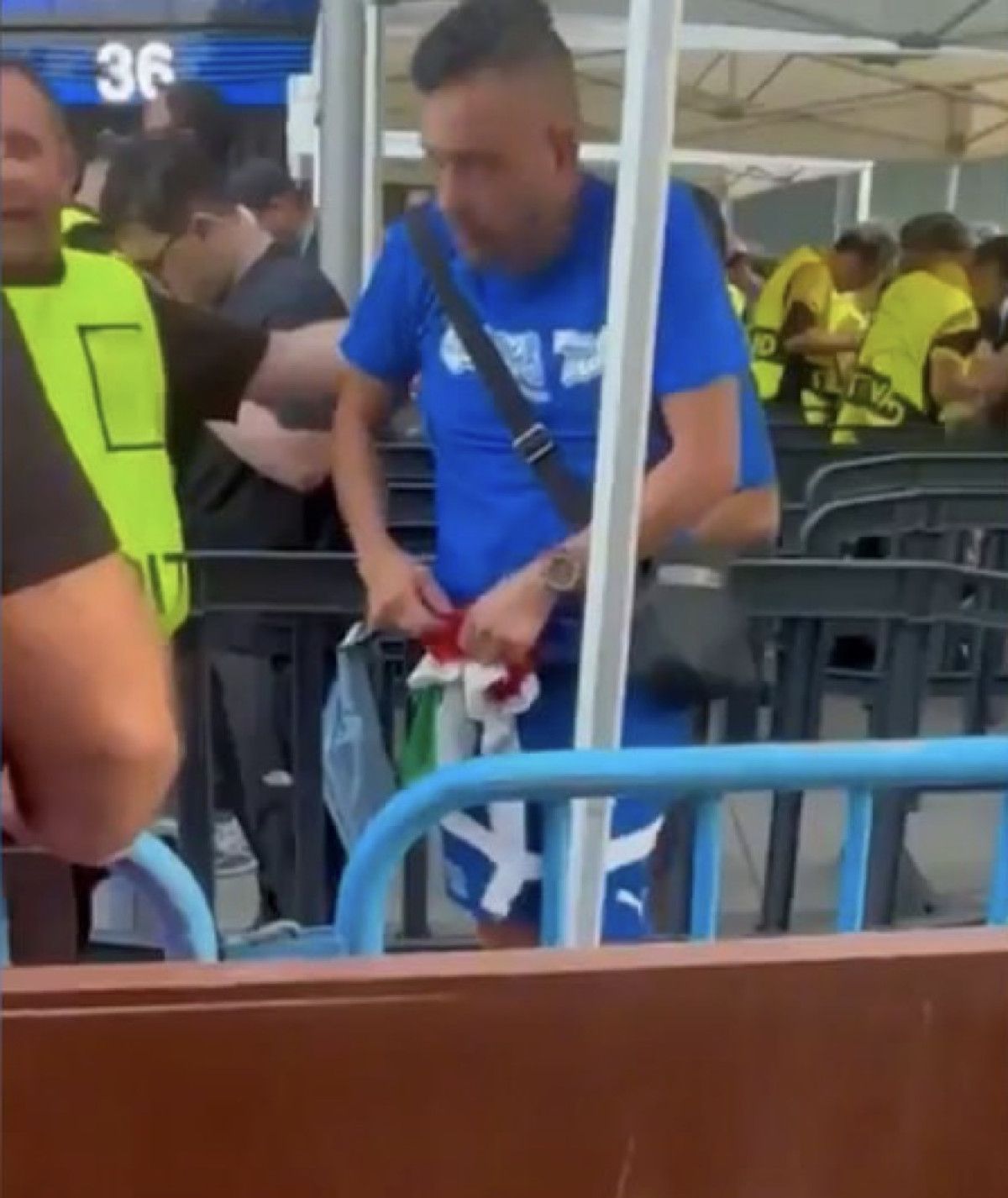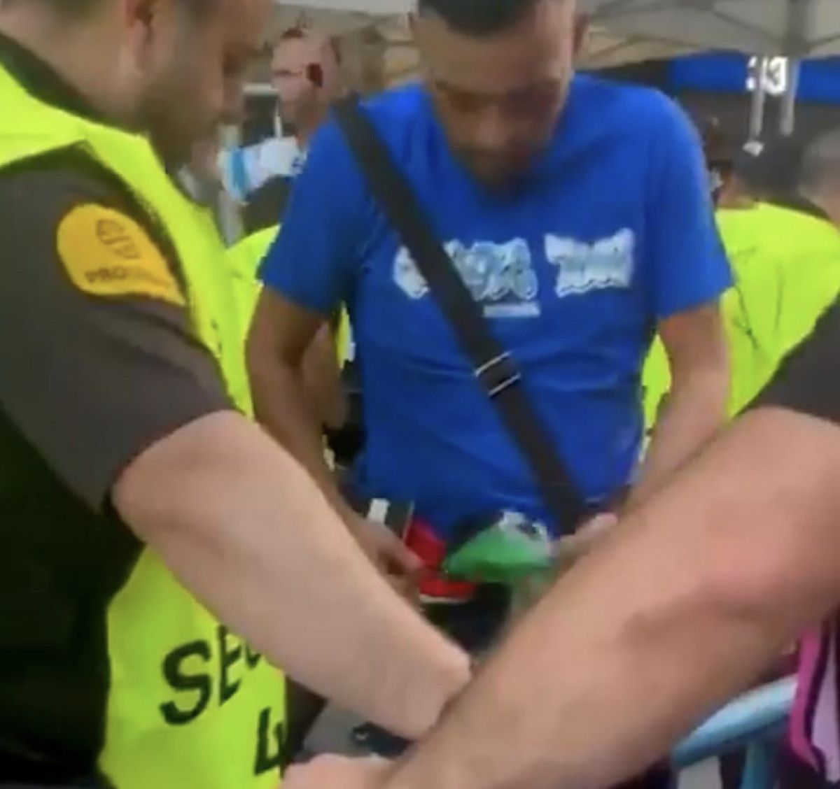 Santiago Bernabeu Stadı görevlileri, Filistin bayrağıyla stada girmeye çalışan Olimpik Marsilya taraftarlarını uyararak “Filistin bayrağıyla içeriye giremezsiniz” sözleriyle engelledi.