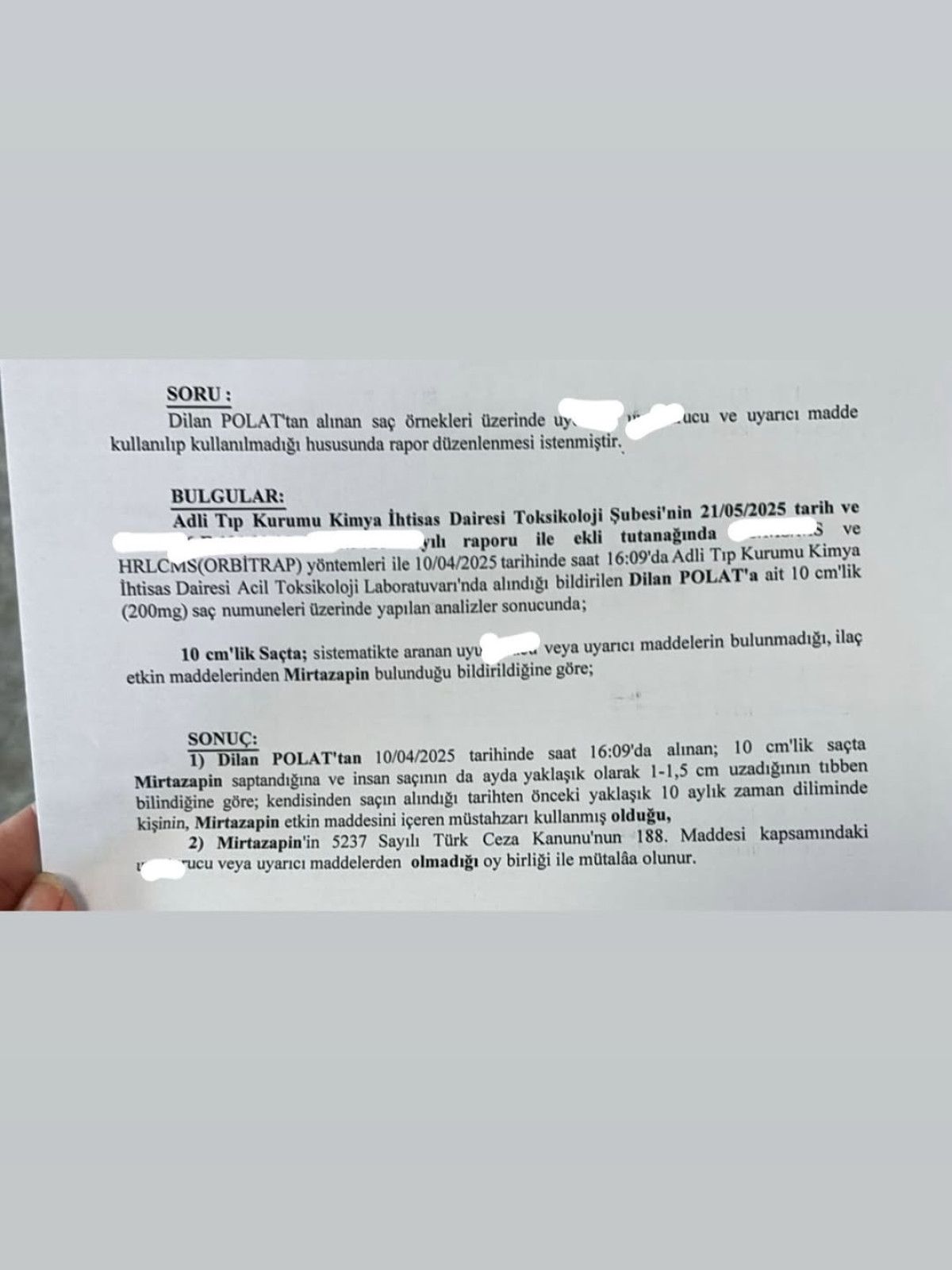 Polat, “uyuşturucu madde kullanmadığı” yönündeki belgeleri yayınlarken, şu notu düştü: