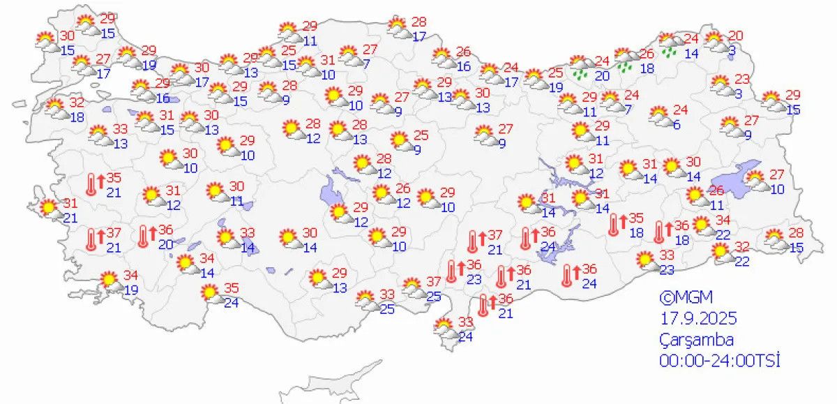 17 Eylül Çarşamba Günü Hava Tahmin Raporu