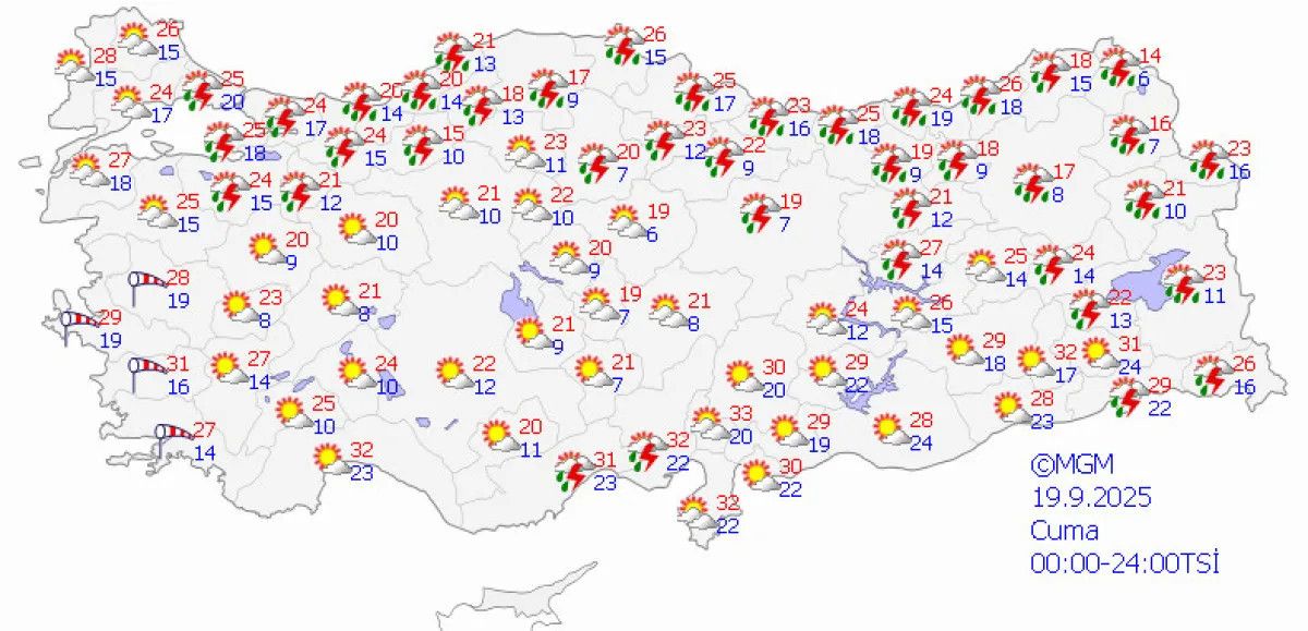 19 Eylül Cuma Günü Hava Tahmin Raporu