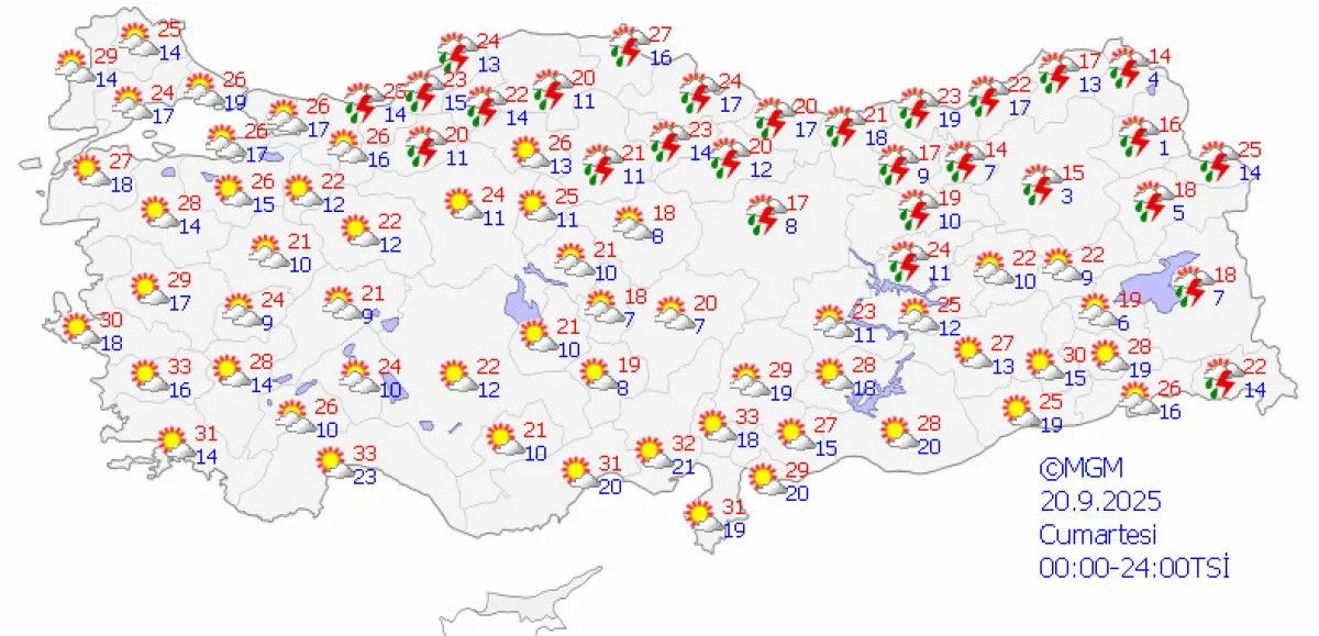 20 Eylül Cumartesi Günü Hava Tahmin Raporu