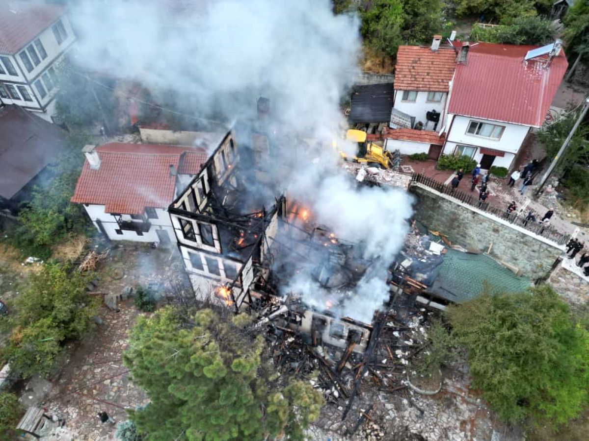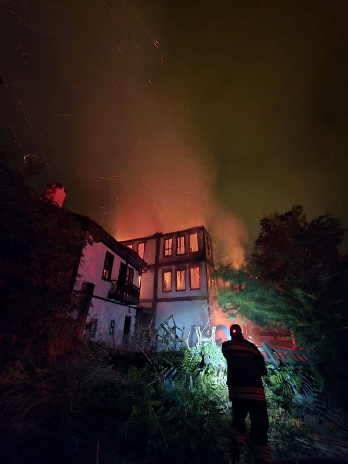 Bolu’nun Mudurnu ilçesi Seyrancık Mahallesi’nde yer alan 3 katlı tarihi Keyvanlar Konağı, gece saatlerinde çıkan yangında kül oldu.
