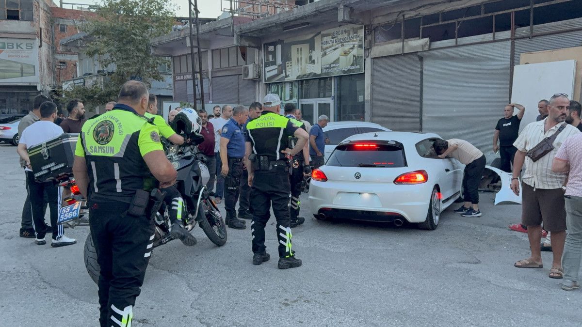 Canik ilçesinde drift yaptığı için polis ekiplerinin peşine düştüğü ehliyetsiz sürücü, sanayi sitesinde iş yeri önündeki esnafa ve park halindeki bir otomobile çarpınca yakalandı. Yaralanan esnaf ölümden dönerken, kaza anı güvenlik kamerasına yansıdı. Sürücü ehliyetsiz, aracı ise plakasız ve abartı egzozlu çıktı.