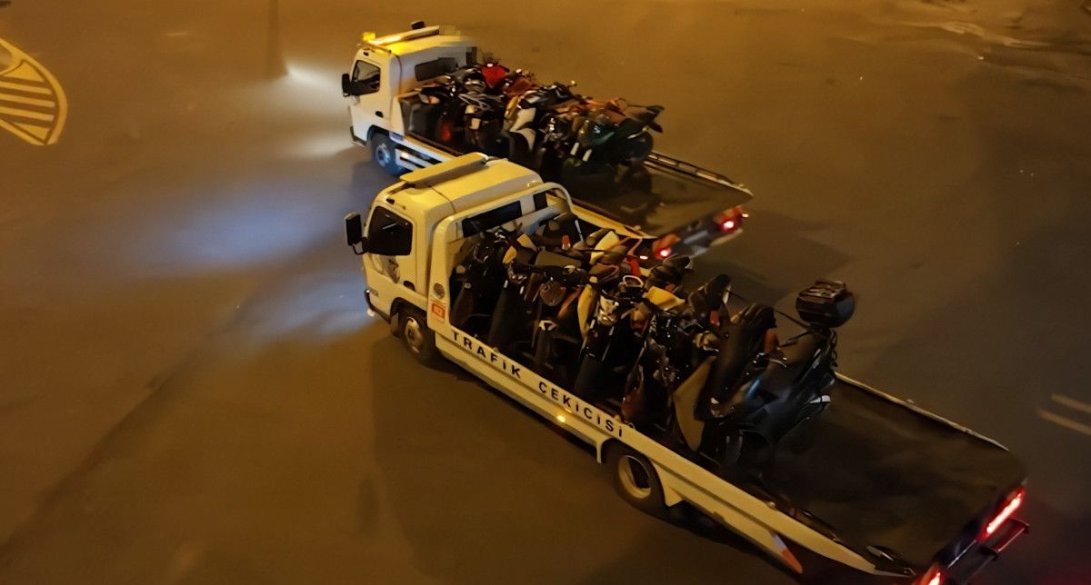 2 motosiklet sürücüsünün, sürücü belgeleri Karayolları Trafik Kanunu’nun 118 maddesi gereğince iptal edilerek, işlem yapılan tüm motosikletler trafikten men edildi.