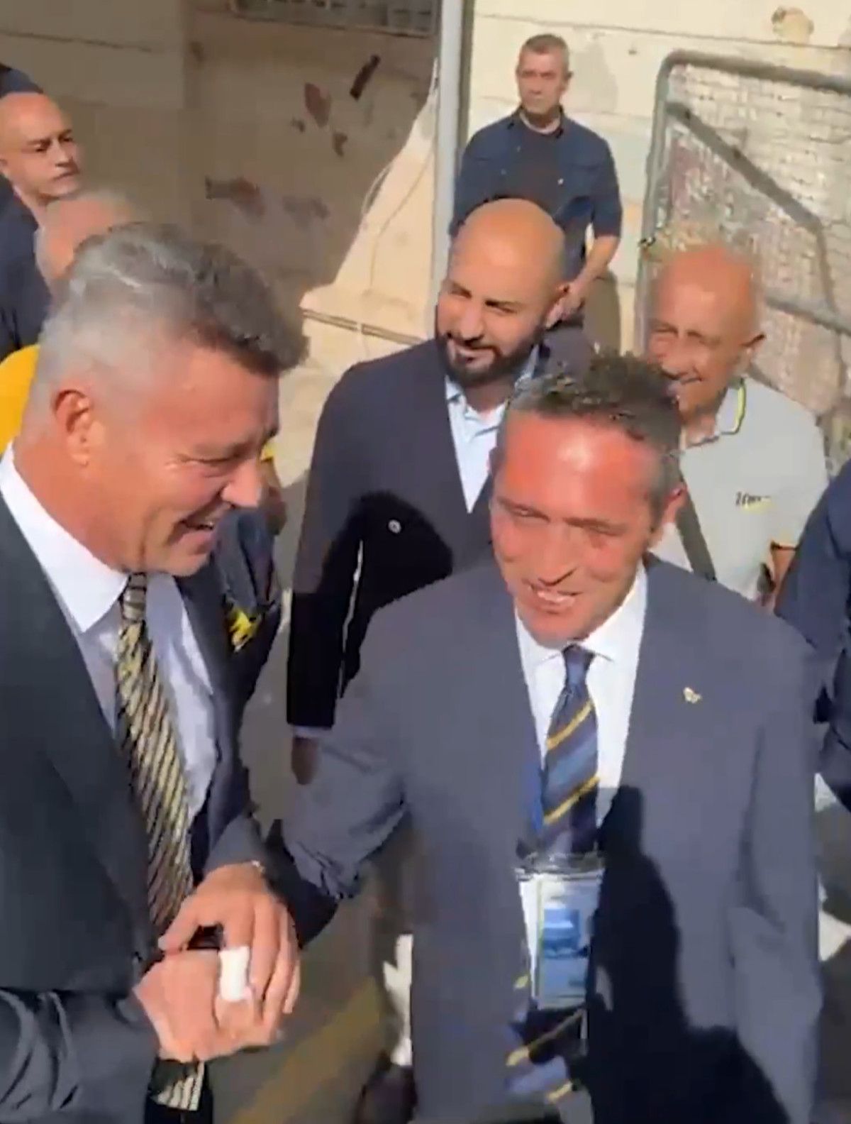 Fenerbahçe’nin başkan adayları Ali Koç ve Sadettin Saran, Şükrü Saraçoğlu Stadyumu’nun önünde selamlaştı.