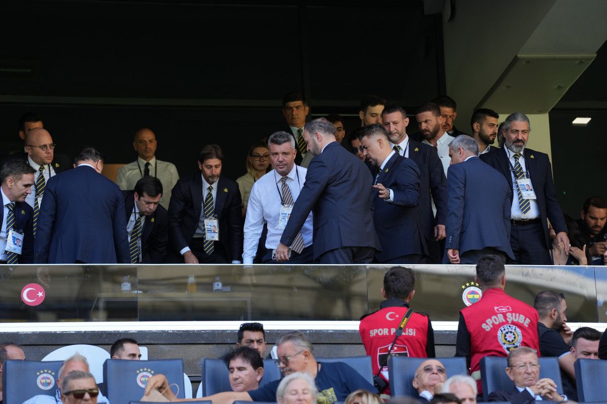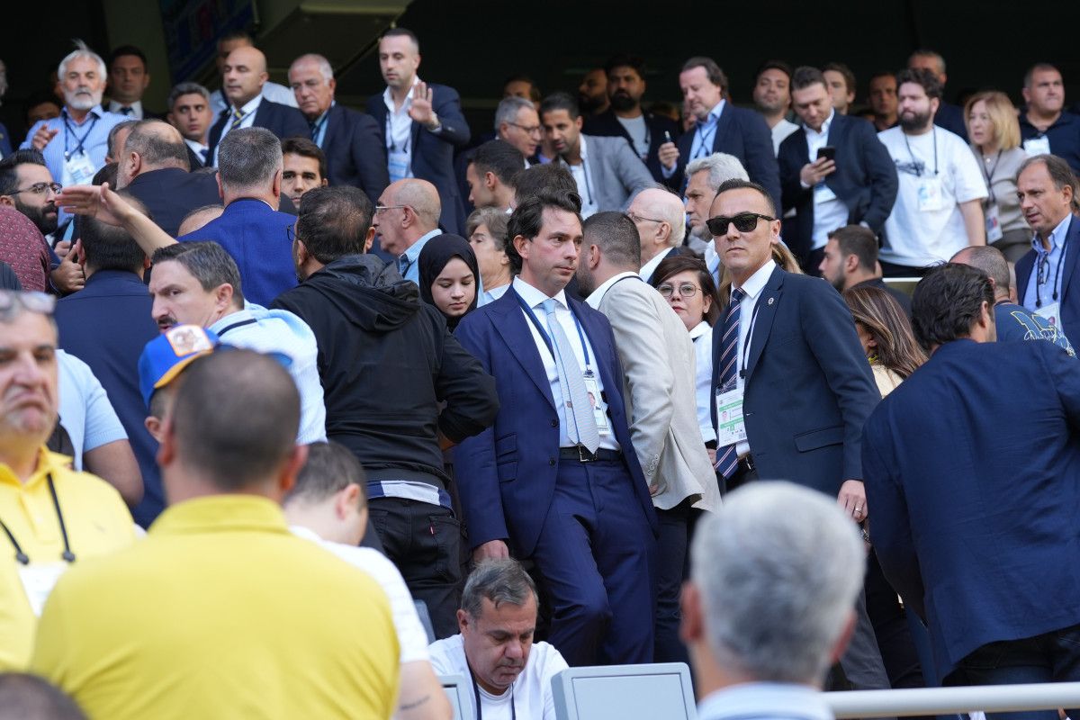 Protokol tribünü önünde laf atışmaları nedeniyle başlayan kavgada, güvenlik güçleri de bu alana geldi.