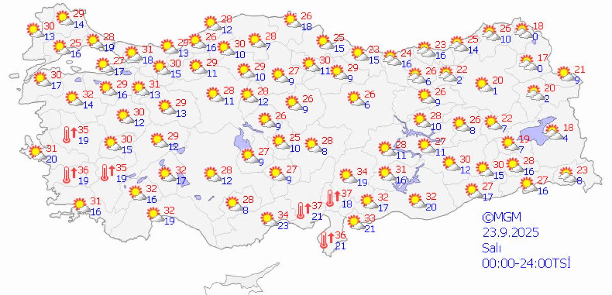 Meteoroloji Genel Müdürlüğü (MGM), Eylül ayının son haftasında, Türkiye genelinde hakim olan sıcak hava dalgasının hafta boyunca etkisini sürdüreceğini duyurdu.