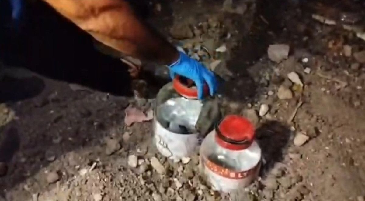 Bazı uyuşturucu maddeleri bidonla toprağa gömülü halde bulundu.