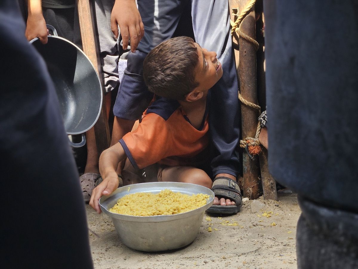 İsrail’in saldırıları altındaki Filistinliler, kıtlık ile mücadele ediyor. Han Yunus’ta Filistinlilere, bir hayır kurumu tarafından sıcak yemek dağıtımı yapıldı.