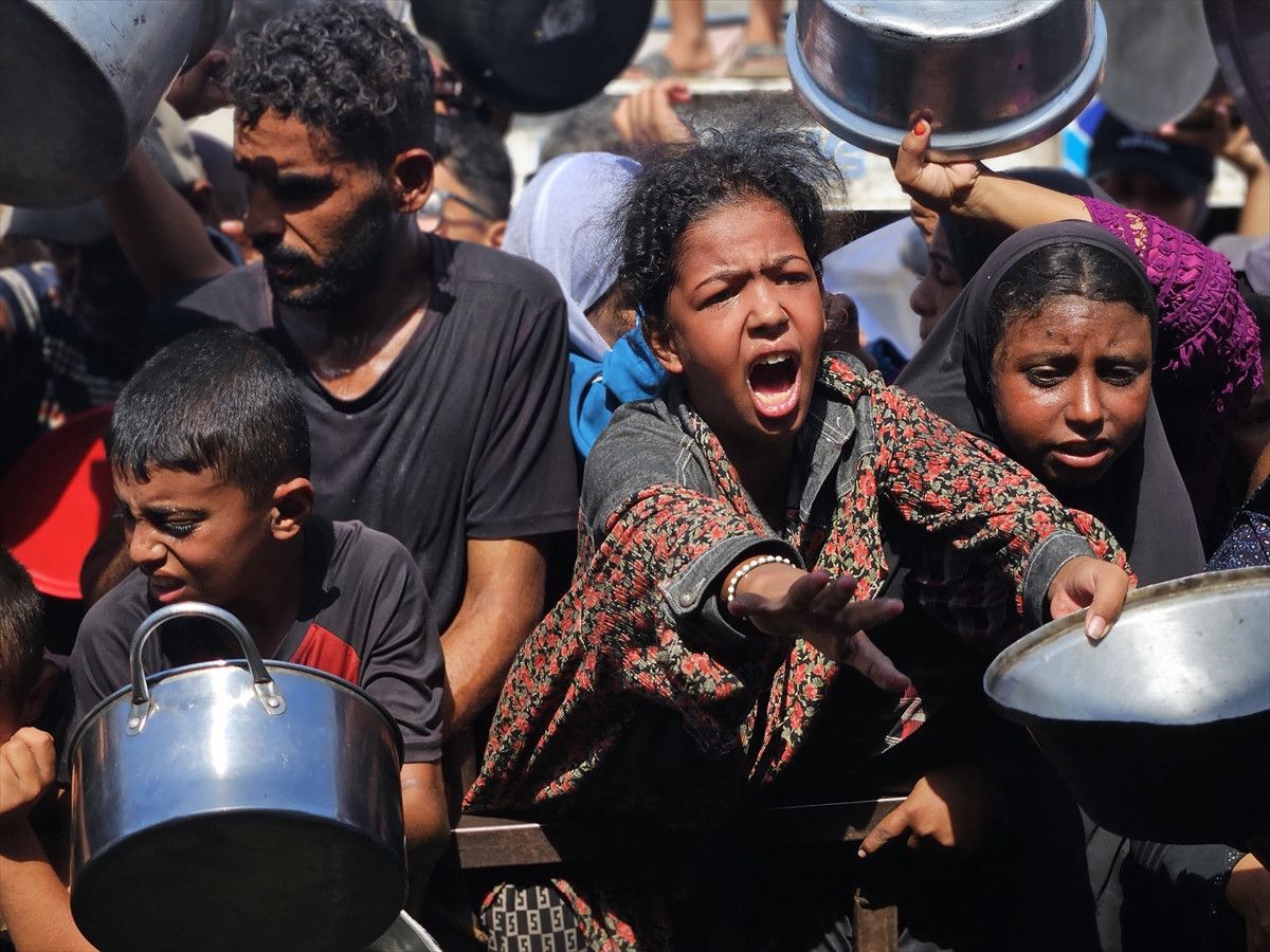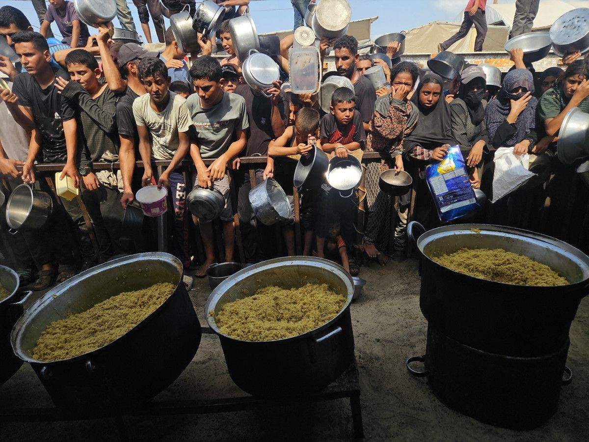 Gazze’de açlıkla mücadele eden Filistinlilere sıcak yemek dağıtıldı