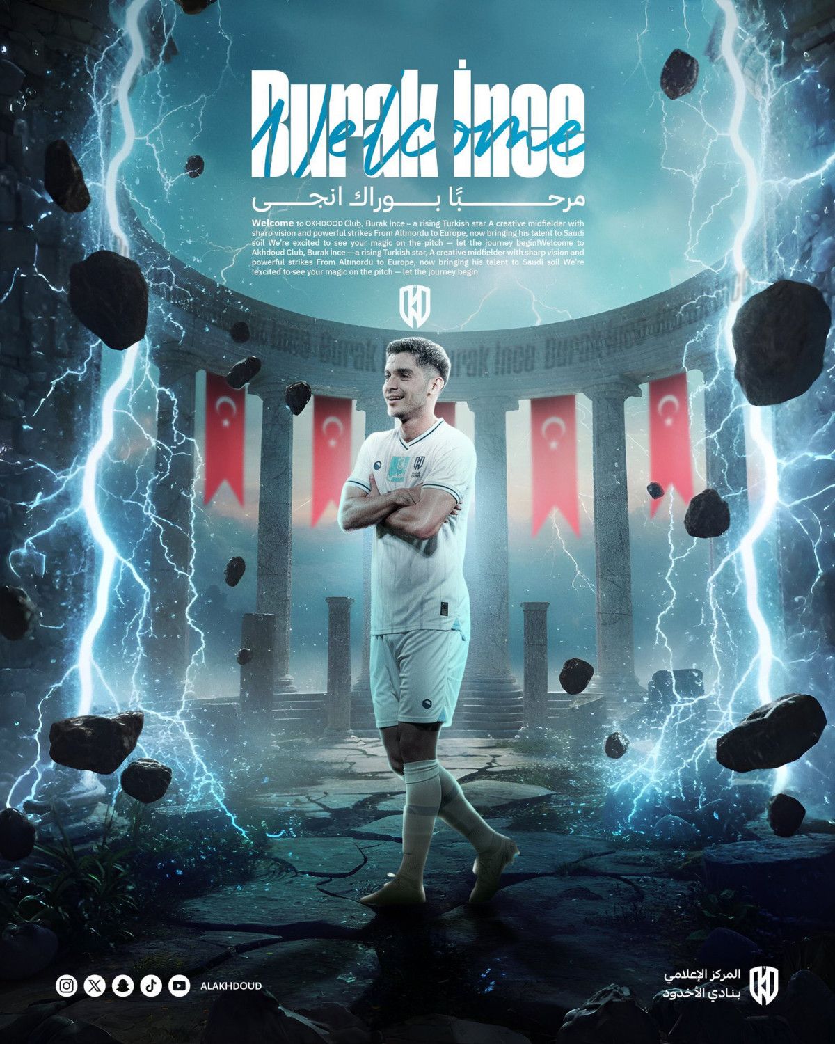 Suudi Arabistan Pro Ligi ekiplerinden Al-Okhdood, sağ kanat oyuncusu Burak İnce’yi kadrosuna kattığını duyurdu.