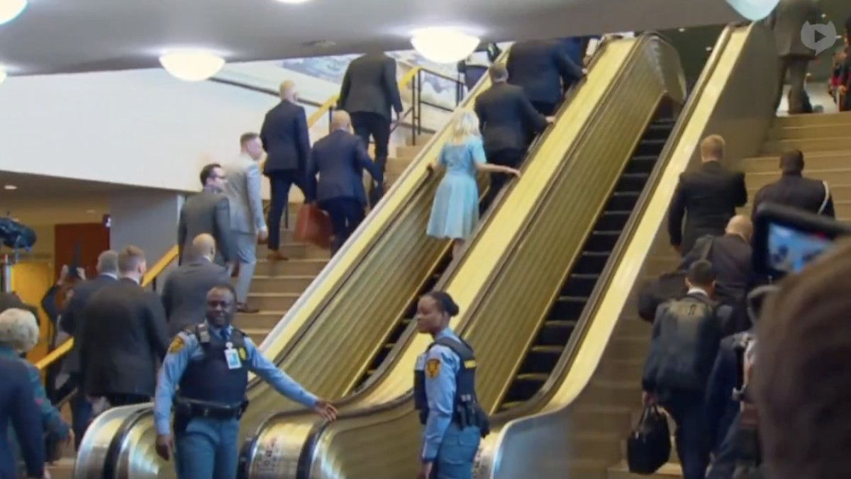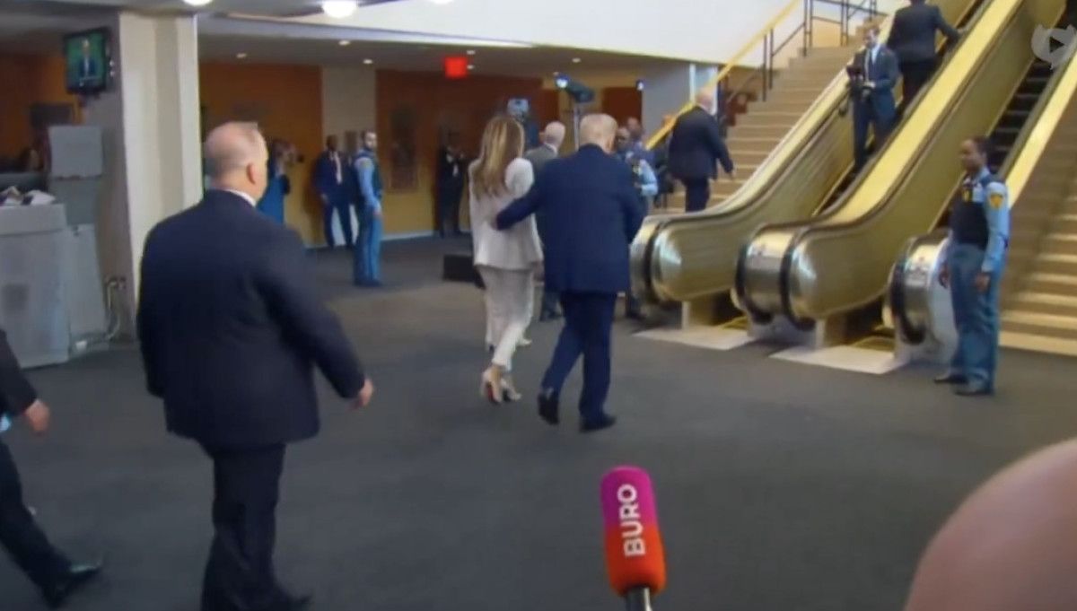 Donald Trump ve Melania Trump’ın BM Genel Merkezi’nde yürüyen merdivene adım attığı anda yürüyen merdiven aniden durdu. O anlar sosyal medyada hızla yayılıp, “Bu bir işaret mi?” yorumları yapıldı.