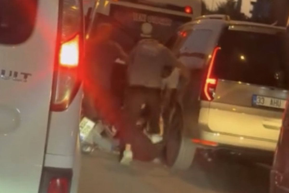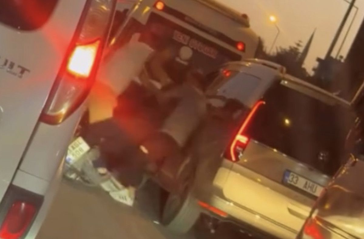 Mersin’in Toroslar ilçesinde trafikte bilinmeyen nedenle motosiklet üzerindeki iki kişi ile hafif ticari araç sürücüsü arasında tartışma çıktı.