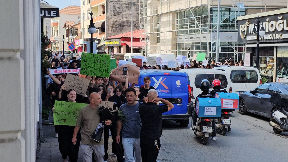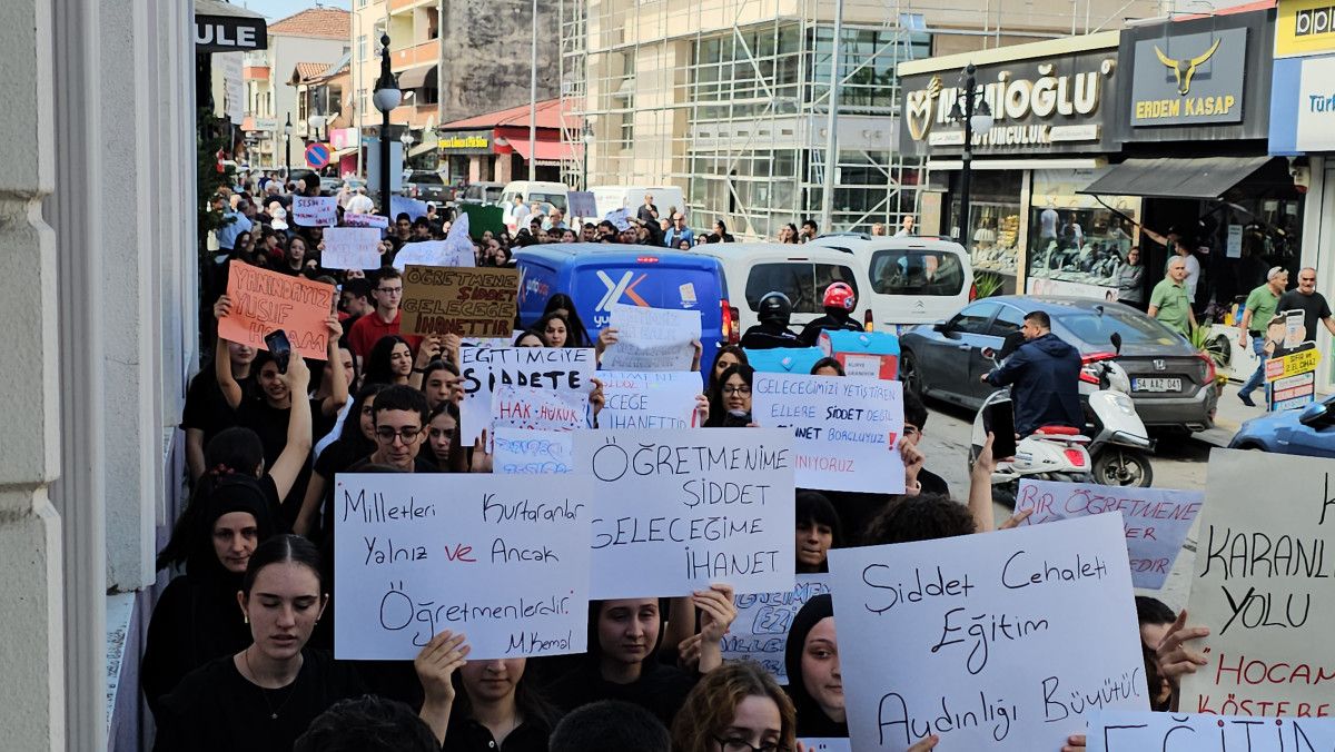 Öğretmene yapılan saldırı öğretmenler, öğrenciler ve sendika temsilcileri tarafından protesto edildi.