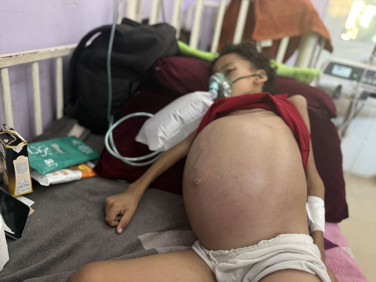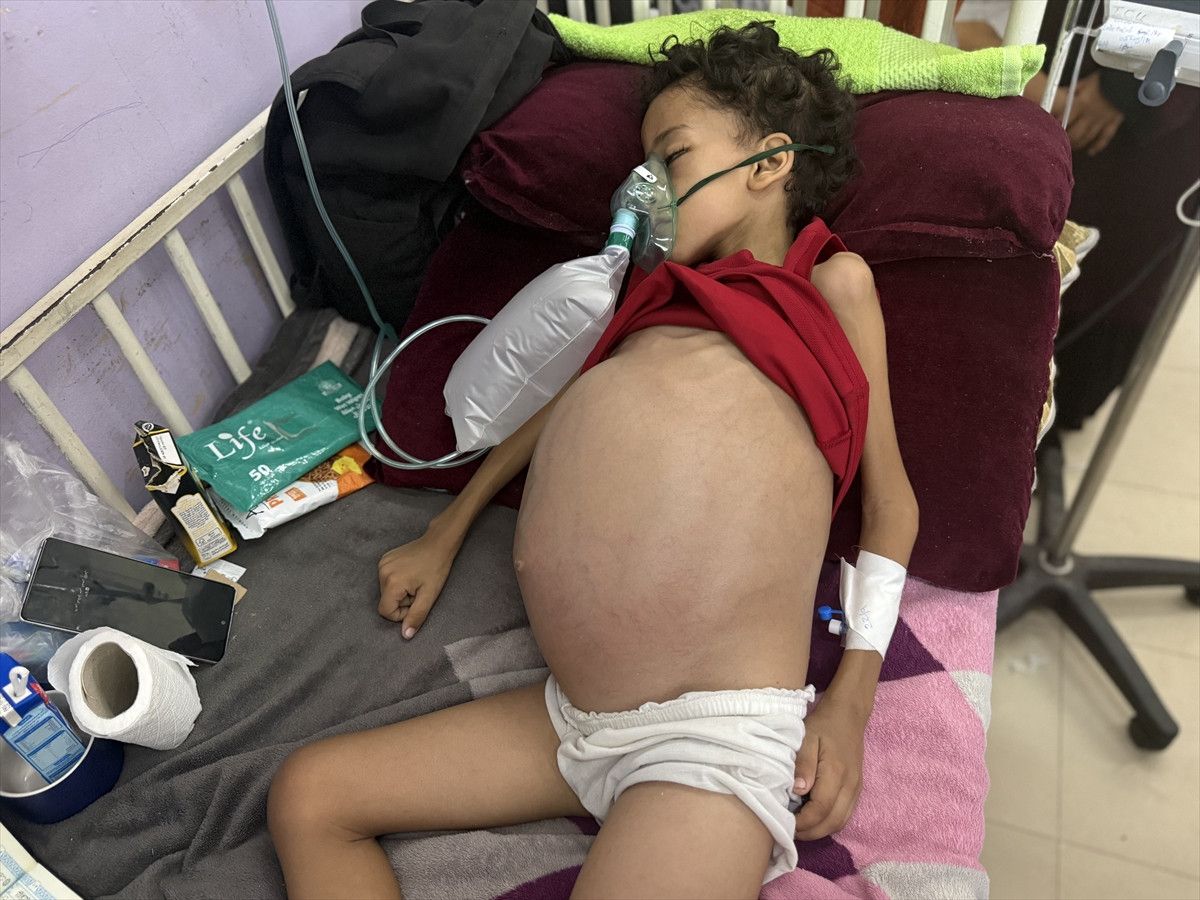 Şiddetli yetersiz beslenmenin ardından vücudunda hızla büyüyen bir tümör nedeniyle durumu kritikleşen 6 yaşındaki Zeyn Usame el-Hilis, ağır sağlık sorunlarıyla yaşam mücadelesi veriyor.