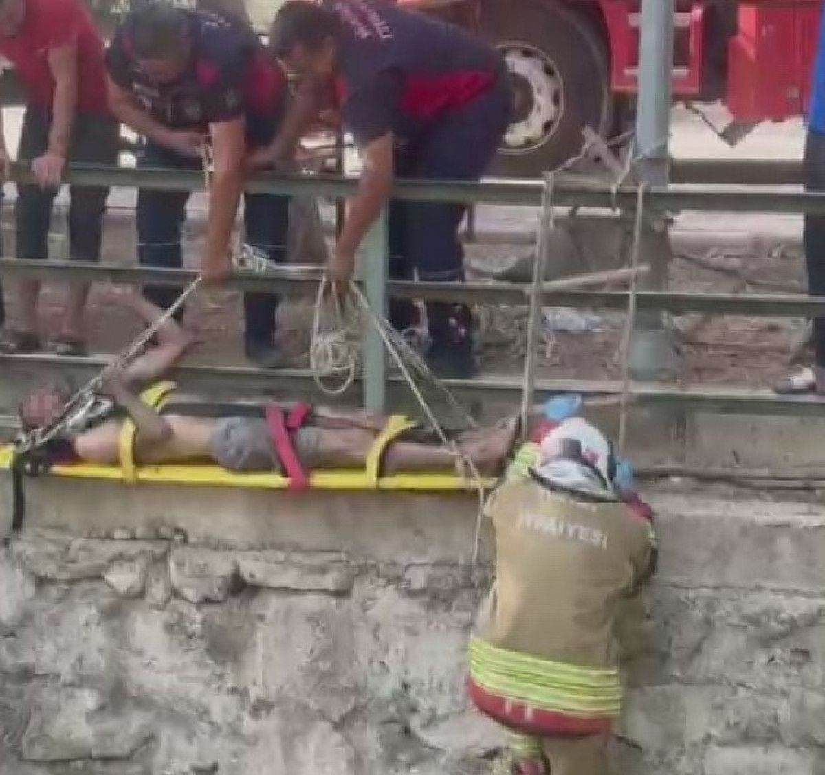 İtfaiye ekiplerinin kurtarma işleminin ardından vatandaş, hazır bekleyen sağlık ekiplerine teslim edilerek gerekli kontroller için hastaneye sevk edildi.