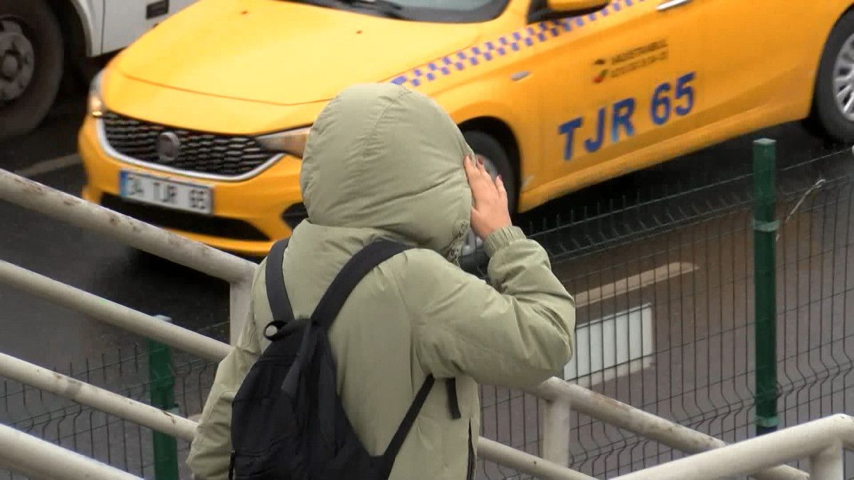Toplu taşımadan inen yolcular ıslanmamak için kapüşonlarını başlarına örterken bazı vatandaşlar da üst geçit altlarında bekledi.