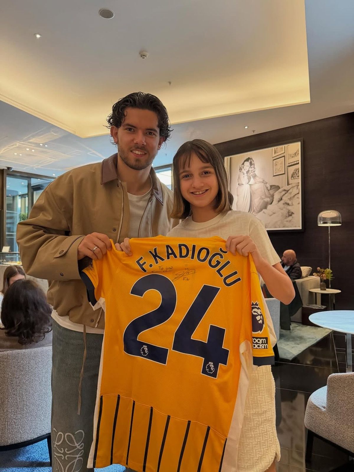 Brighton’da oynayan Ferdi Kadıoğlu, Chelsea’yi 3-1 yendikleri maçın ardından Fenerbahçe’nin eski başkanı Aziz Yıldırım’ın kızı Yaz’a forma hediye etti.