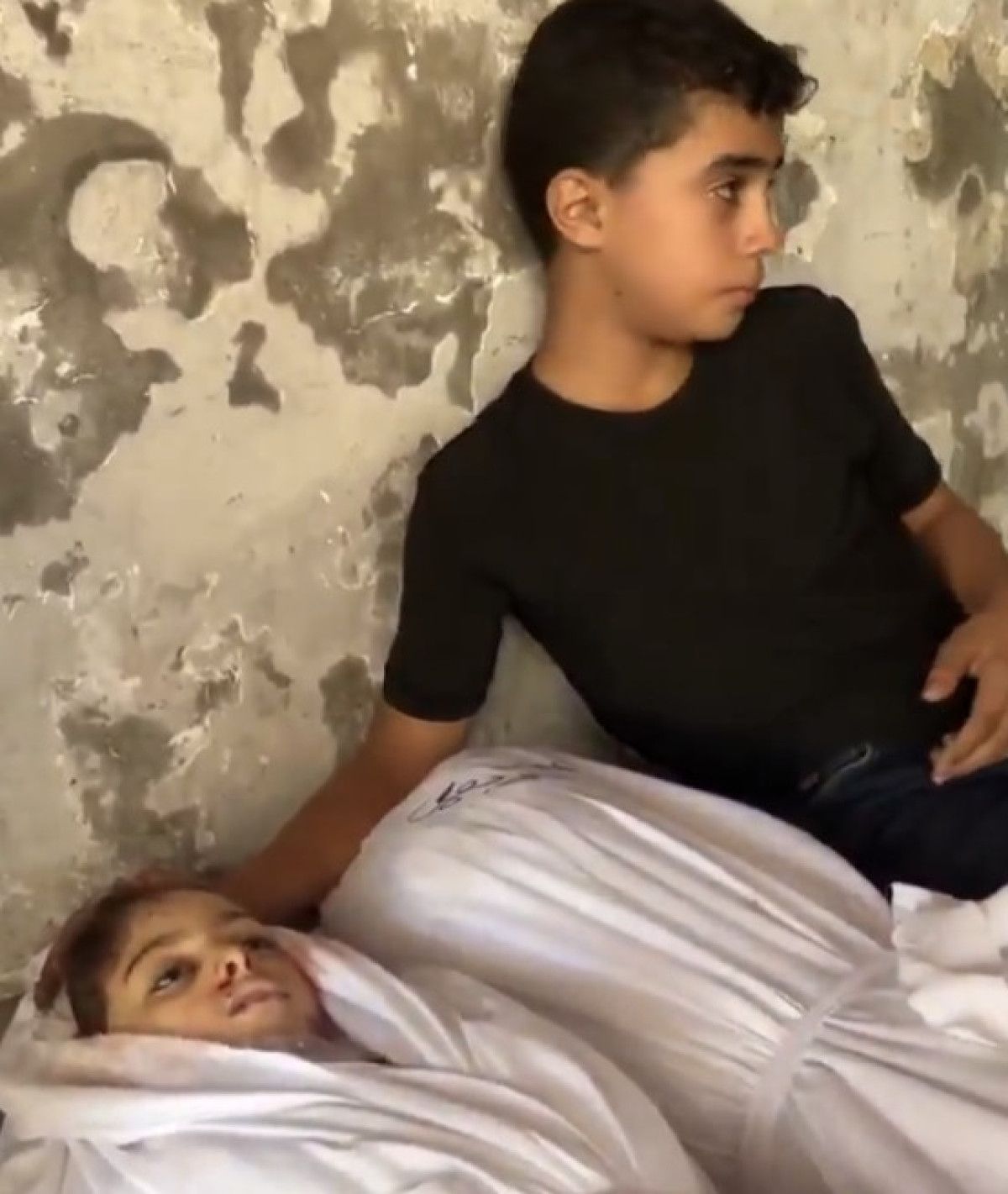 Gazze’de kardeşinin cansız bedeni başında bekleyen çocuk, görenlerin yüreğini burktu.