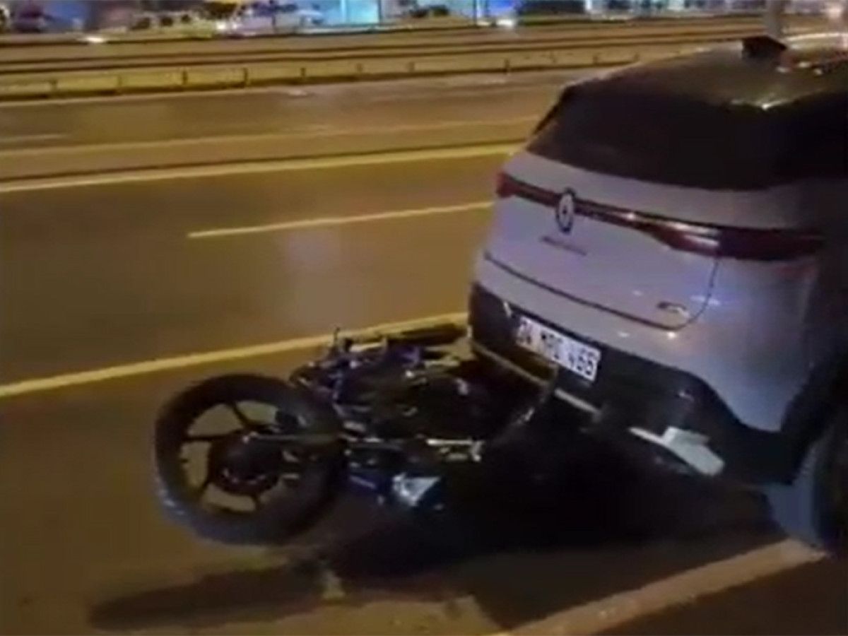 İstanbul’un Avcılar ilçesi D-100 kara yolu Saadetdere Mahallesi geçişinde sürücüsünün hakimiyetini kaybettiği motosiklet, yol kenarında duran otomobile çarptı.
