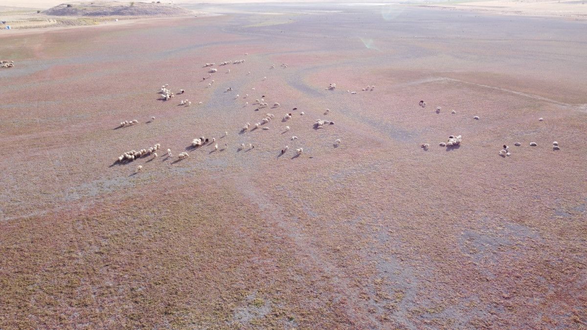Kuraklığın şiddetini gözler önüne seren görüntülerde, baraj havzasındaki çatlamış toprak ve hayvanların yayıldığı alan dikkat çekti.
