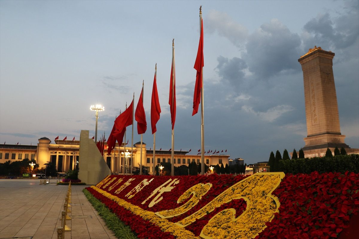 Çin Halk Cumhuriyeti’nin kurucu lideri Mao Zıdong’un portresinin yer aldığı, “Yasak Şehir” olarak bilinen eski İmparatorluk Sarayı’nın güney duvarı aydınlatıldı. Meydanın ortasına ise Ulusal Gün’e özel olarak hazırlanan dev çiçek buketi yerleştirildi.
