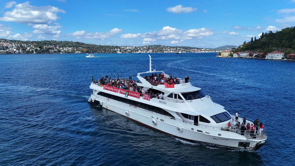İngiliz ekibinin Boğaz turu yaptığı tekne üzerinde “We are one of the miracles of İstanbul” yazılı pankart olduğu görüldü.