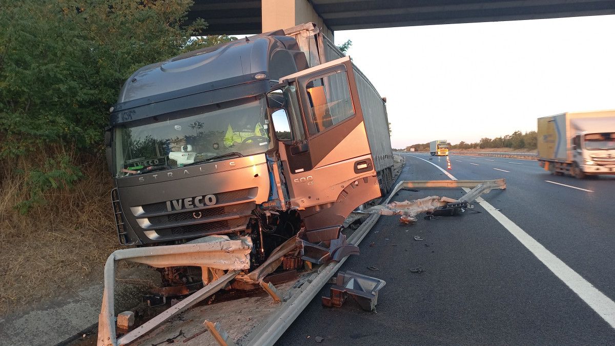 Edirne-İstanbul TEM Otoyolu’nun 62’nci kilometresinde, PB 8545 CM plakalı tırın sürücüsü iddiaya göre uykusuzluk ve yorgunluk nedeniyle direksiyon hakimiyetini kaybetti. Kontrolden çıkan tır, bariyerleri adeta ok gibi delerek ilerledi ve köprü ayağına çarparak durabildi.
