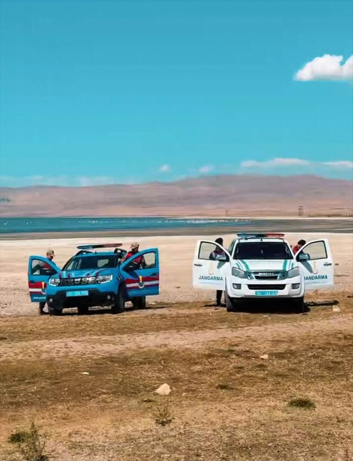 Van’da jandarma ekipleri, “kuş cenneti” olarak bilinen Erçek Gölü’nde konaklayan flamingoları korumak için çalışma yürüttü.