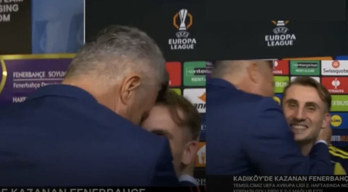 Fenerbahçe’nin Nice’i 2-1 mağlup ettiği karşılaşmanın ardından Kerem Aktürkoğlu yayıncı kuruluşa röportaj verdi. Kulüp Başkanı Sadettin Saran, röportaj devam ederken yayına girerek Aktürkoğlu’na sarıldı. O anlarda yaşanan diyalog izleyenleri gülümsetti…