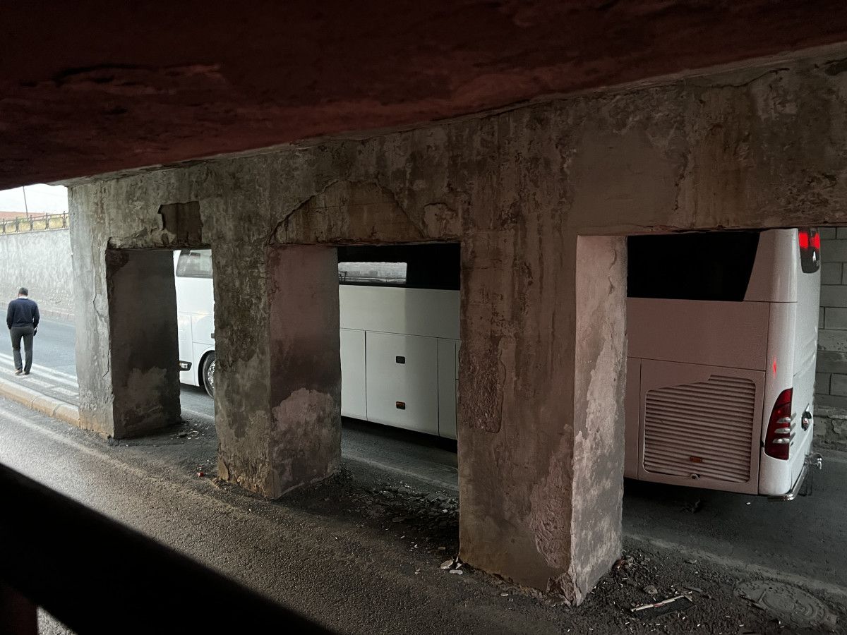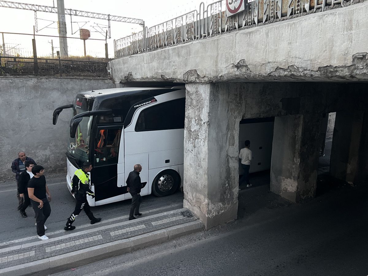 OTELE DÖNERKEN OTOBÜS ALT GEÇİDE SIKIŞTI