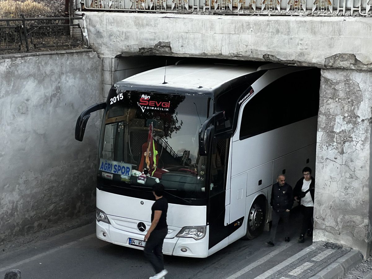 3. Lig ekiplerinden Erciyes 38 FK ile pazar günü karşılaşacak olan Ağrı 1970 SK’nin takım otobüsü Kayseri’de alt geçide sıkıştı.