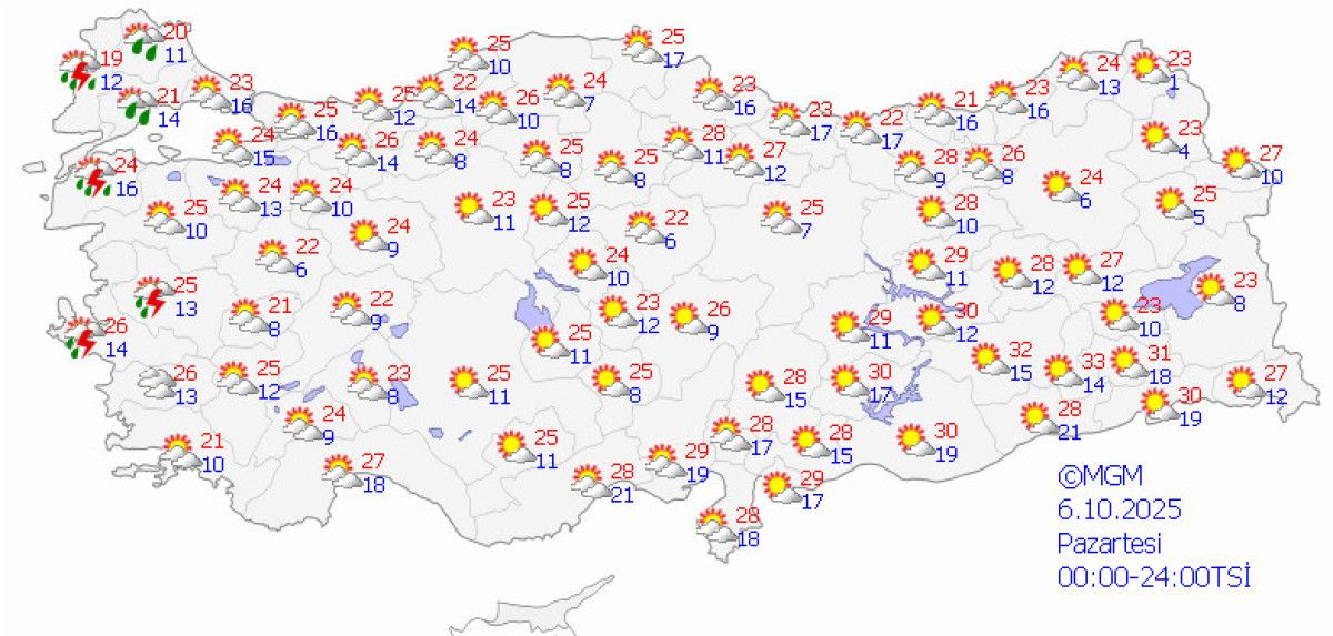 Çelik, İzmir’de ise sıcakların hafta başında 26 ila 27 derecelerde seyredeceğini, hafta ortasından sonra ise 23 ila 24 derecelere düşeceğini söyledi.