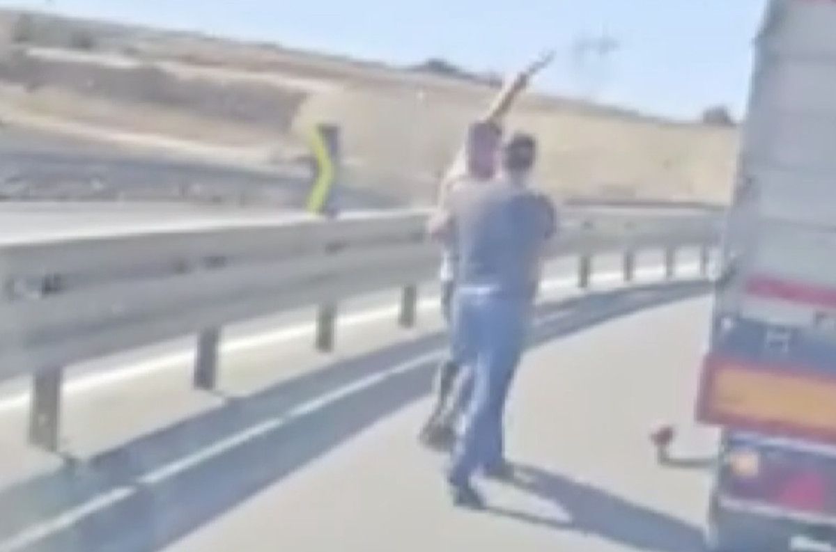 Tartışmanın büyümesi üzerine araçtan inen sürücülerden biri, eline aldığı sopayla koşarak diğer sürücünün üzerine gitmeye başladı.