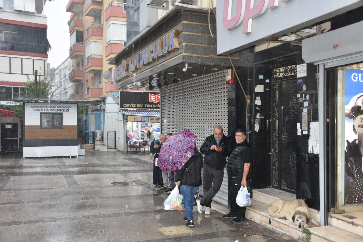 Yağmura hazırlıksız yakalanan vatandaşlardan bir kozmetik firmasında çalışan Murat Can Bulut, “İstanbul’dan yeni geldim. Orada da yağmur vardı ancak burada etkili oluyor. İzmir’de felaket bir yağmur var. Korunaklı bir alanda kalakaldık” dedi.