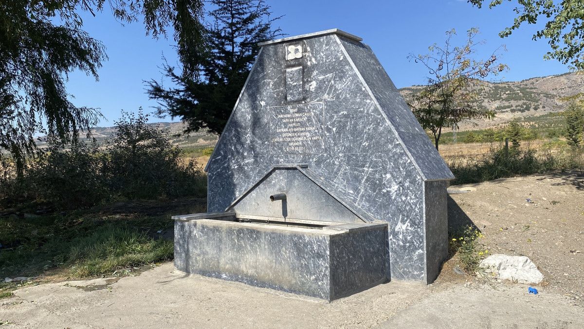 Bu çeşmeyi ilk yaptırdığımızda 1 yıl falan hiçbir şey olmadı. Sonra talihsiz bir olay oldu. Şehidimizin resmini kazıyıp aldılar, bayrağın üzerini çizdiler. Biz tekrar yaptırdık.