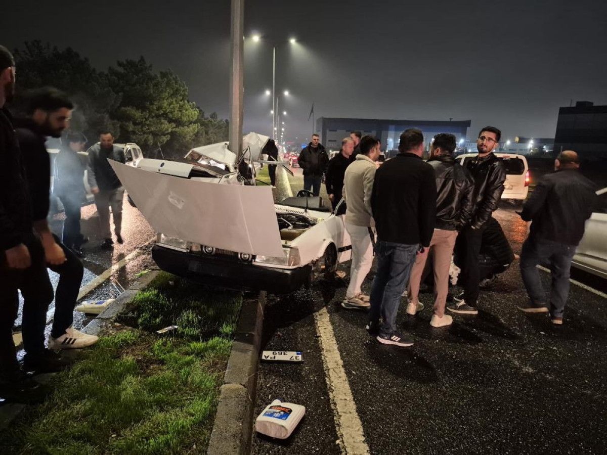 Tekirdağ’da direğe çarpan otomobil ikiye ayrıldı