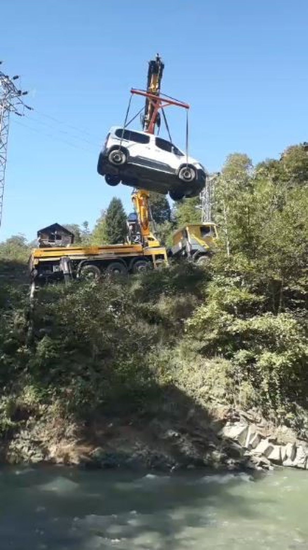 Artvin’de sel felaketinde mahsur kalan aracını 20 gün sonra vinçle kurtardı