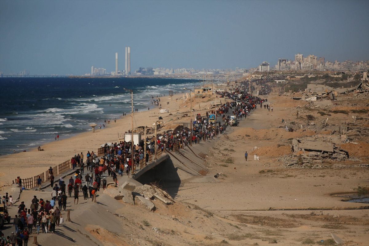Gazze’de yürürlüğe giren ateşkesin ardından, sahil kesimdeki Reşid Caddesi, yerinden edilmiş Filistinlinin güney kesiminden kuzey bölgelerine dönüşüne sahne oldu.