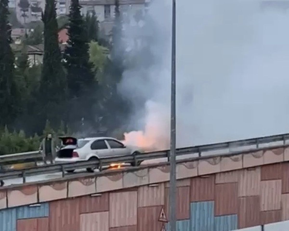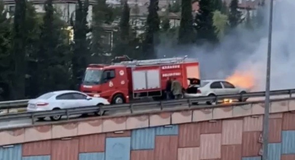 Bir otomobilin motor kısmından yükselen alevler, itfaiye ekiplerinin hızlı müdahalesiyle büyümeden söndürüldü. Yangın nedeniyle araçta maddi hasar meydana geldi.