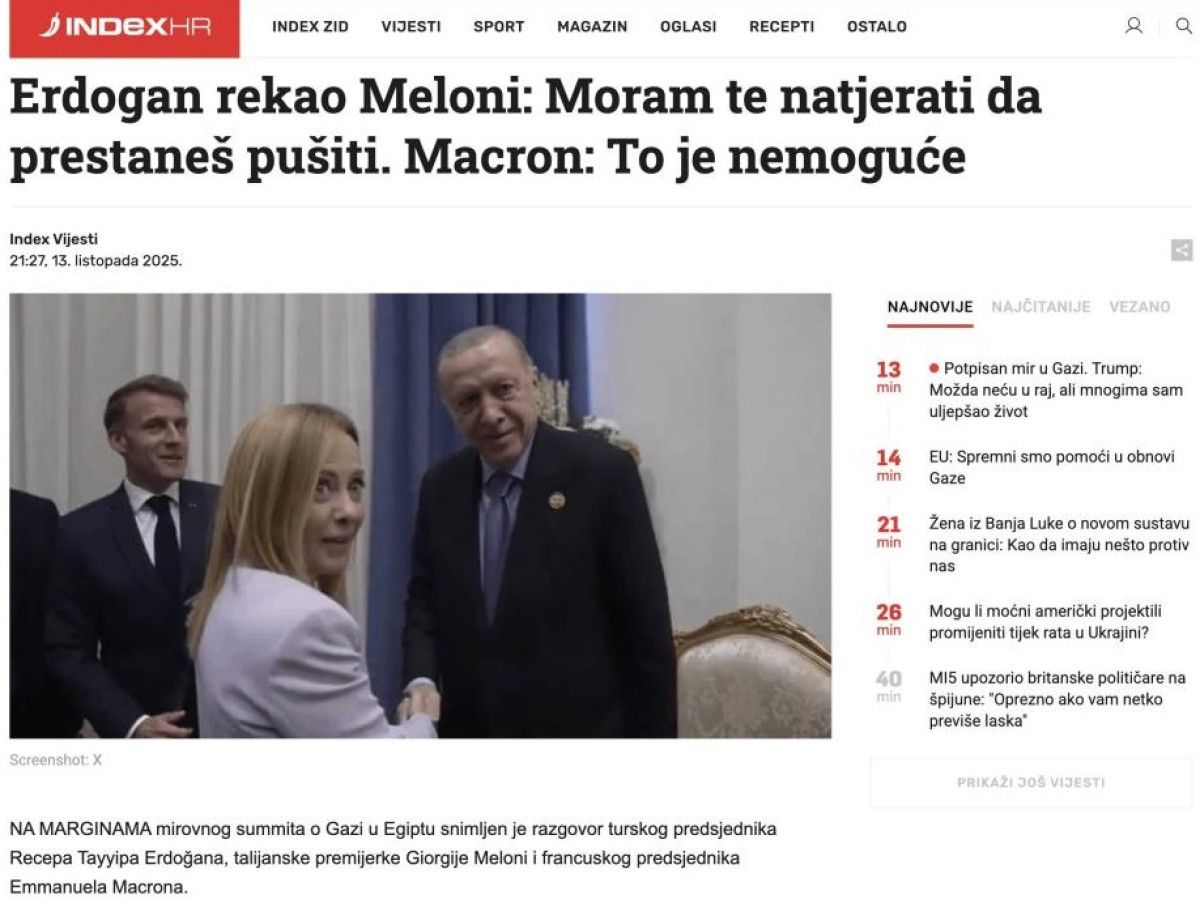 Sırbistan’ın Politika gazetesinin internet sitesi ise Erdoğan’ın Meloni’yi sigara konusunda ‘kendine özgü, yarı şakacı bir tonla uyardığını’ yazarken Hırvatistan’ın Index haber portalında Meloni’nin bir dizi röportaja dayanan bir kitapta sigarayı 13 yıl önce bıraktıktan sonra tekrar içmeye başladığını itiraf ettiği detayına yer verildi.