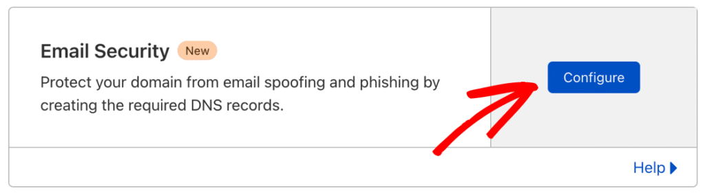 DNS sayfasında, E-posta Güvenliği’ni görene kadar aşağı kaydırın . Devam etmek için mavi Yapılandır düğmesine tıklayın.