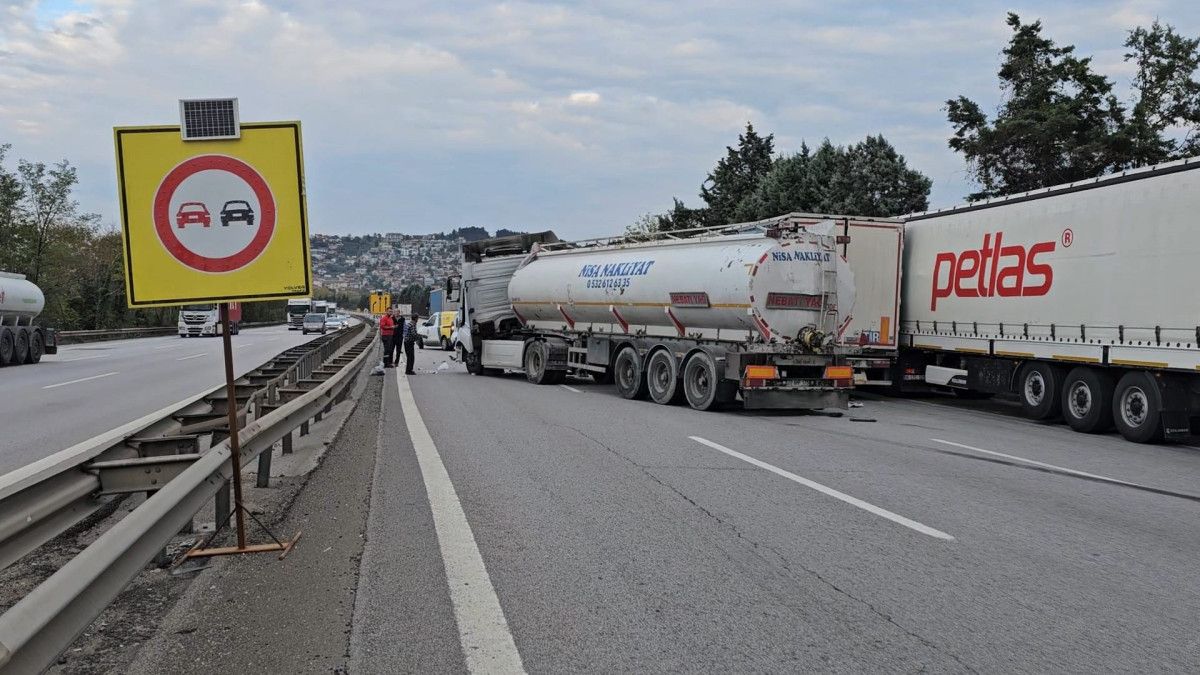 Anadolu Otoyolu’nun Sapanca mevkiinde meydana gelen kazada, yağ yüklü bir TIR başka bir TIR’a arkadan çarptı. Kazada arkadan çarpan sürücü yara almadan kurtuldu.