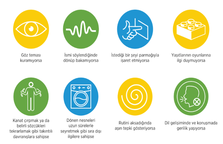 Benim çocuğumda Otizm mi var ? sorusuna cevap arıyor iseniz aşağıda sayacağım maddeler Otizmin temel taşlarıdır. Yine belirtmekte fayda var bir birine çok benzer ve yakın durumlar taşıyan iki durumun internetten tanısının konması mümkün oldukça zor olacaktır. bu işin en sağlıklı noktası Bir Çocuk Psikoloğuna görünmektedir. Otizm olma ihtimali yüksek ve risk taşıyan çocuklar da aşağıdaki durumlar neredeyse tüm çocuklar da mevcut ve ortak noktadır.