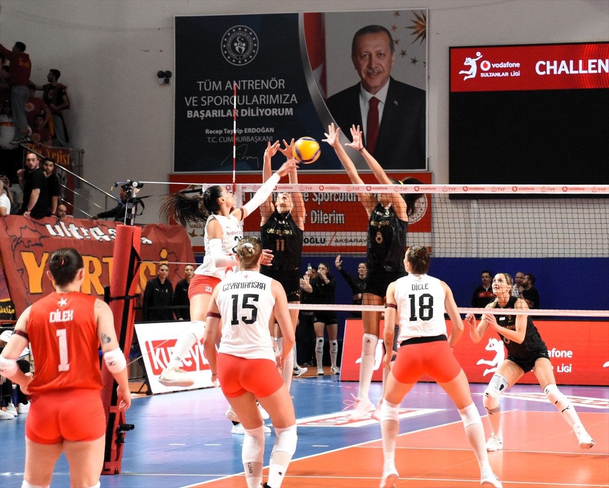 Aksaray Spor Salonu’nda oynanan müsabakada kazanan 3-0’lık skorla konuk takım Galatasaray oldu.