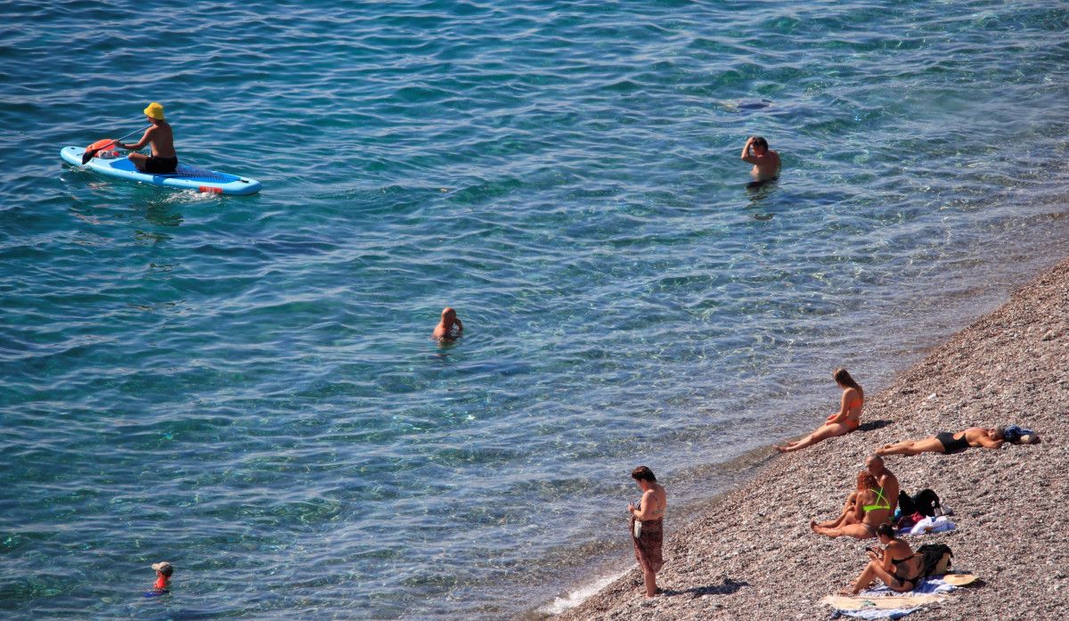 Hava sıcaklığını fırsat bilen bazı vatandaşlar ise Konyaaltı Sahili’nde denize girerken, bazıları da SUP tercih etti.