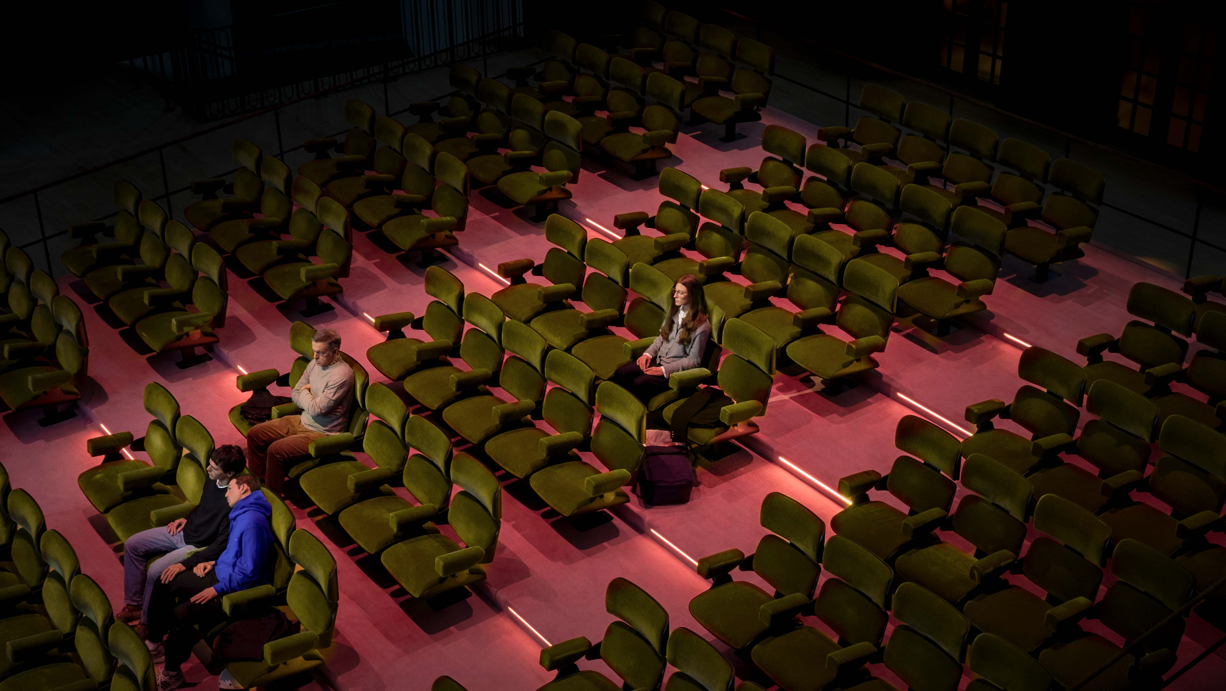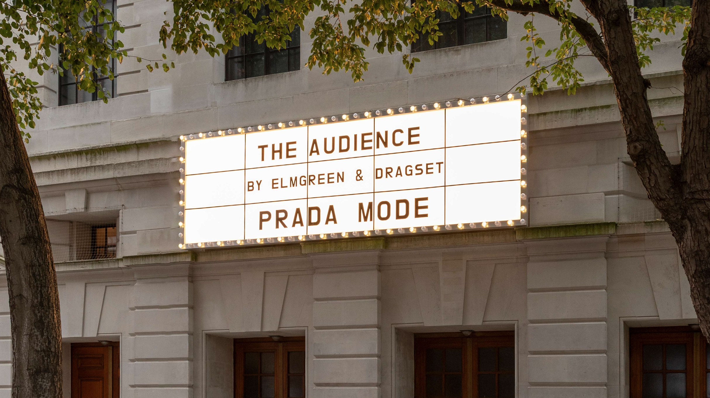 Prada Mode London kapsamında Town Hall, sinema biçiminde kurgulanmış bir yerleştirme olan “The Audience”a evsahipliği yaptı. Bu mekanda, Elmgreen & Dragset tarafından yazılmış, kasten bulanıklaştırılmış bir film sürekli döngü halinde gösterildi.