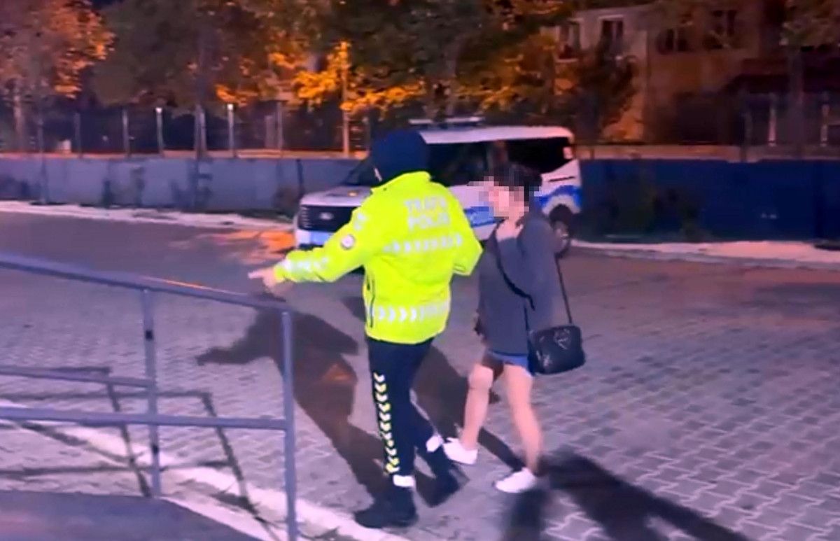Polis ekiplerinin yaptığı kontrolde 35 yaşındaki Gamze K.’nin 3.51 promil alkollü olduğu belirlendi.