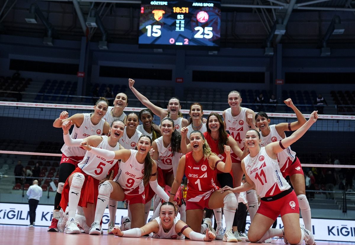 Voleybol Sultanlar Ligi’nde 3. haftasında Aras Spor, İzmir derbisinde Göztepe’yi 3-0 yendi.
